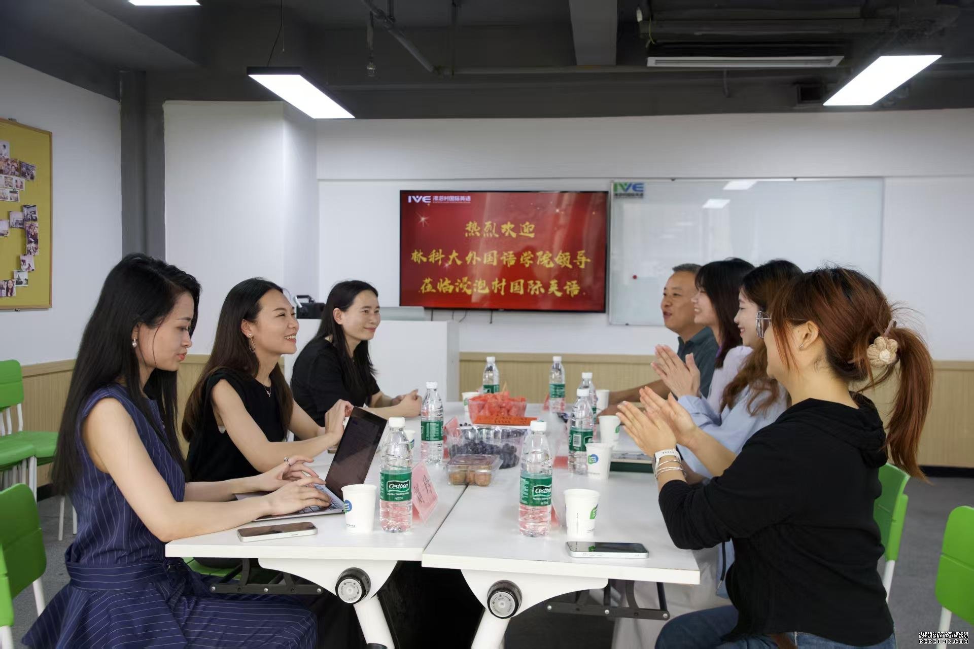 随后,双方在会议室举行了座谈会。座谈会上,浸泡村国际英语负责人分享了企业的发展历程、核心业务板块以及未来的发展规划。其表示,随着语言培训行业的快速发展,企业对高素质专业人才的需求日益增长,希望能与中南林业科技大学外国语学院在人才培养、实习就业等方面开展深度合作。