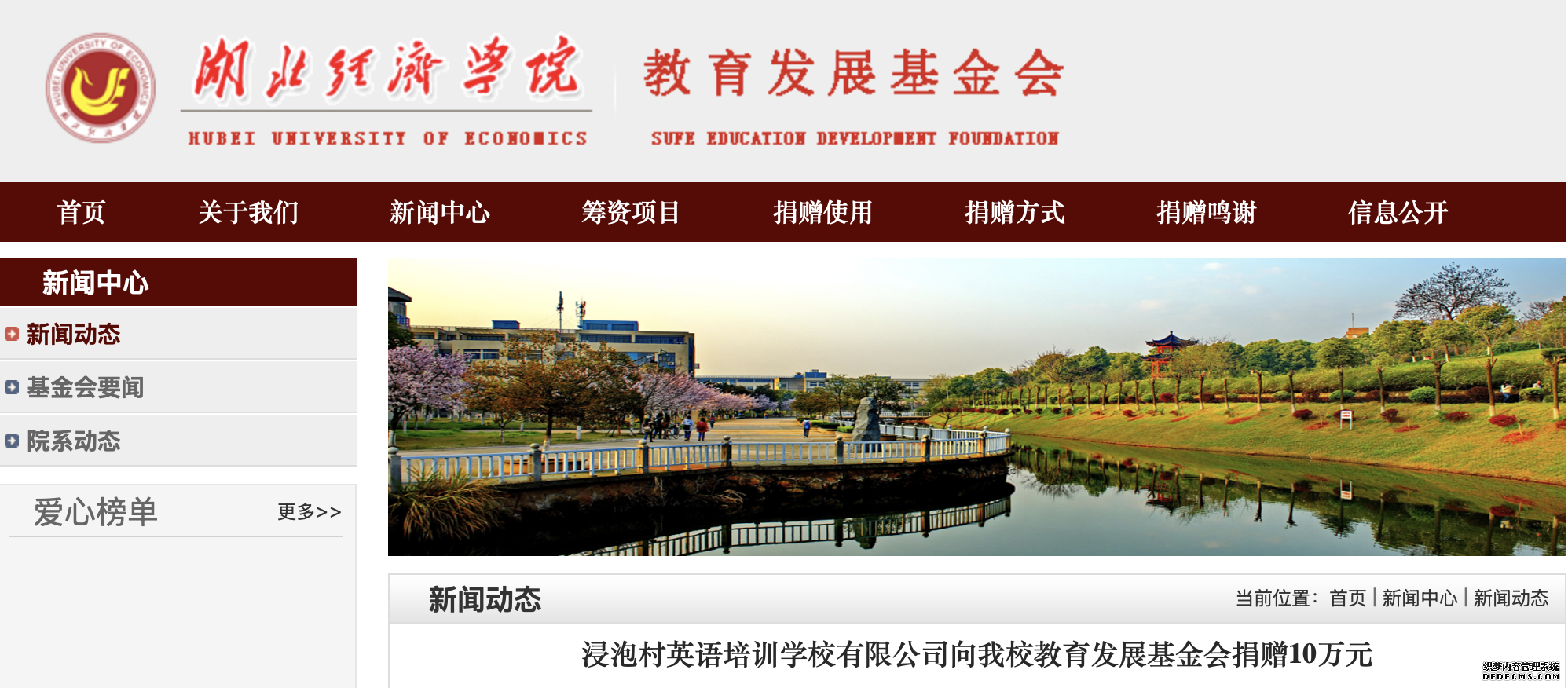 2024年10月23日,浸泡村英语培训学校有限公司向湖北经济学院教育发展基金会捐赠十万元,专项用于外国语学院的内涵建设。